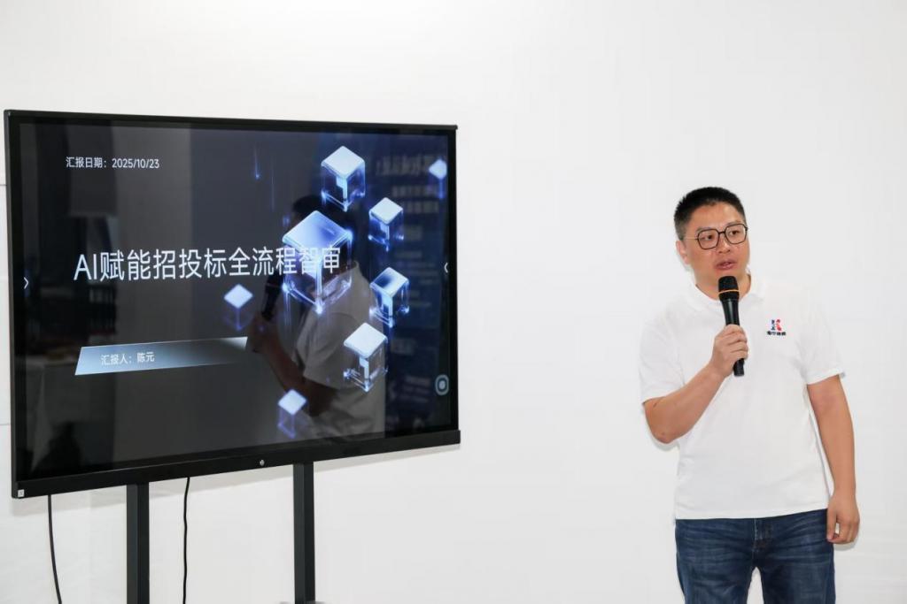 圖說(shuō):技術(shù)人員講解 AI 賦能招投標(biāo)業(yè)務(wù)
