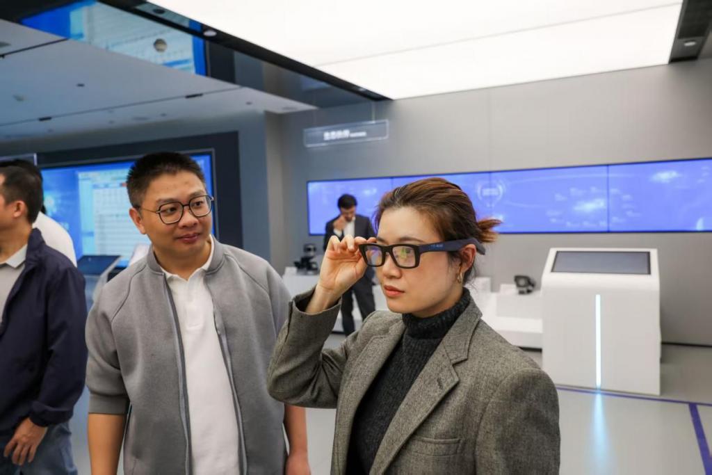 圖說(shuō):與會(huì)人員饒有興致地體驗(yàn) AI 眼鏡