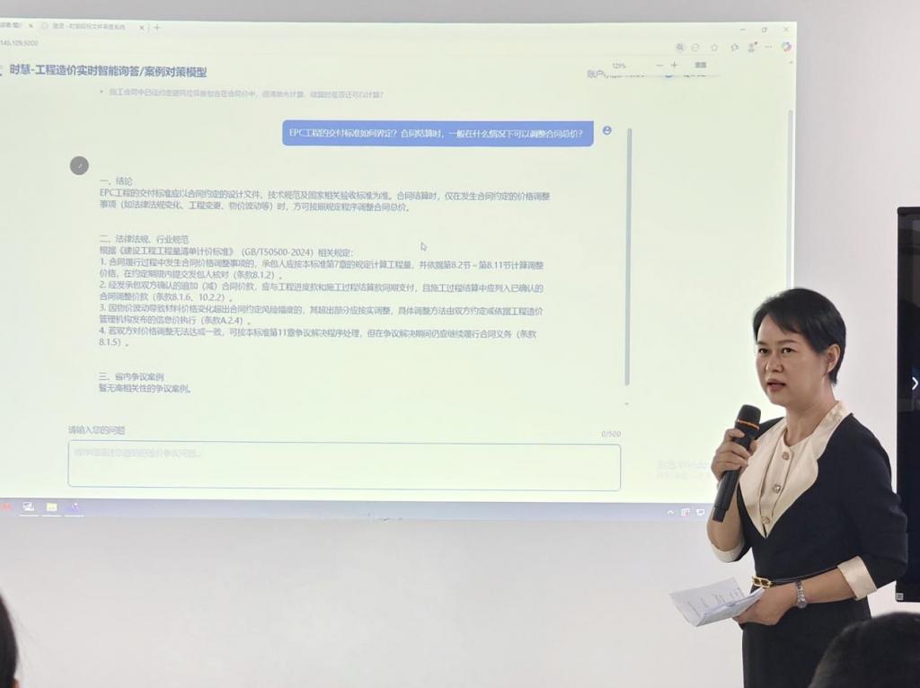 圖說(shuō):技術(shù)人員在演示工程造價(jià)實(shí)時(shí)智能詢答與對(duì)策模型應(yīng)用場(chǎng)景